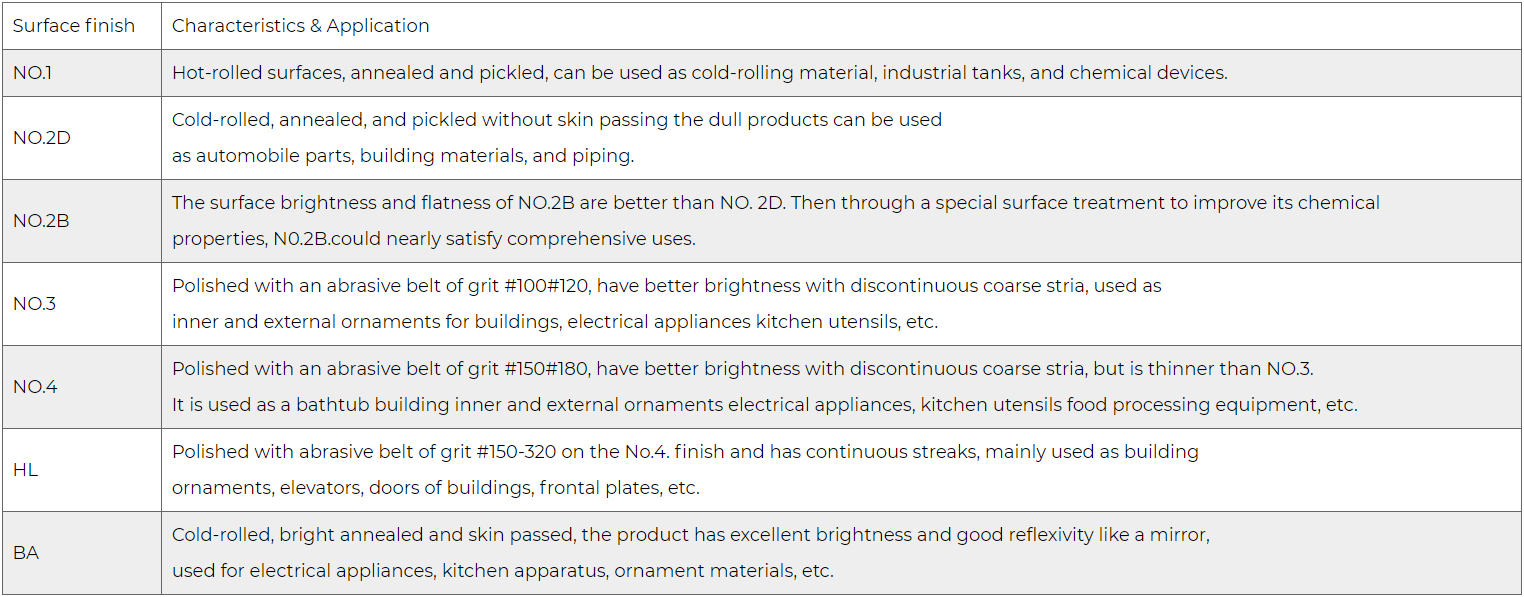 스테인레스 스틸 표면 마감 의 특성 및 응용